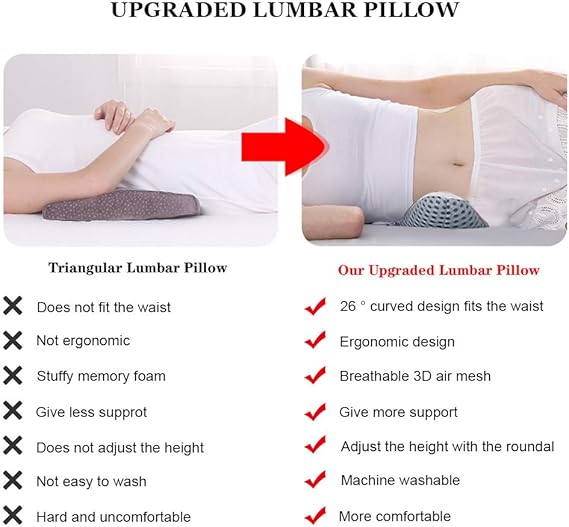 Relief from Pain: Our lumbar support cushion is ergonomically designed to fully fit your waist, filling the gap between your waist and the bed. This helps alleviate hip, sciatica, and back pain, providing you with a more comfortable and restful sleep. It's particularly suitable for individuals with lower back pain and pregnant women.